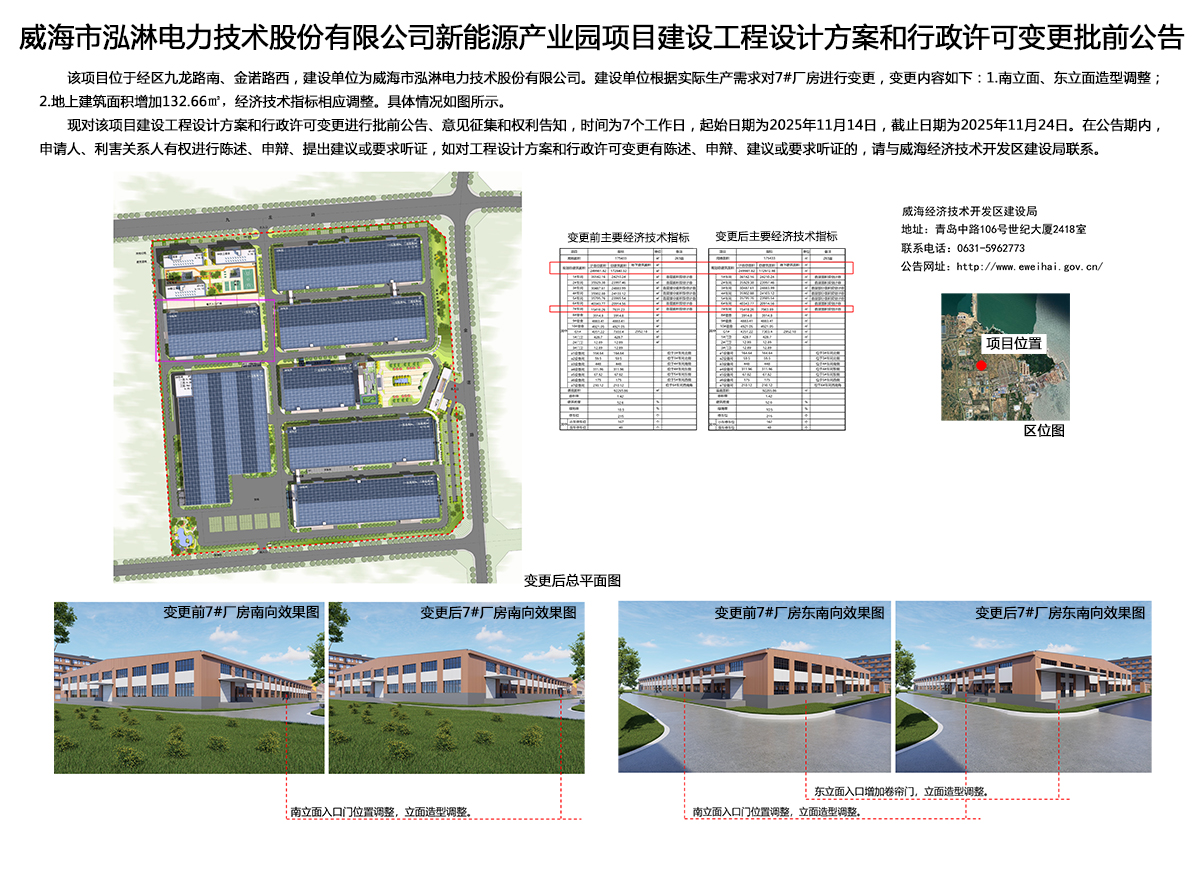 威海市泓淋电力技术股份有限公司新能源产业园项目建设工程设计方案和行政许可变更批前公告