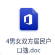 4 | 男女双方居民户口簿 | 原件 | 纸质/电子 | 原件拍照上传 | 2 | 用于户口登记项目变更 (婚姻状况)、户口迁移 (夫妻投靠落户)及生育 登记。 |